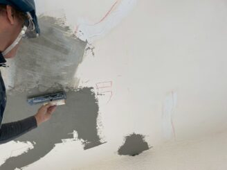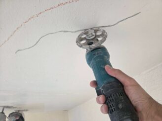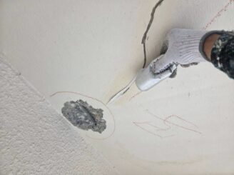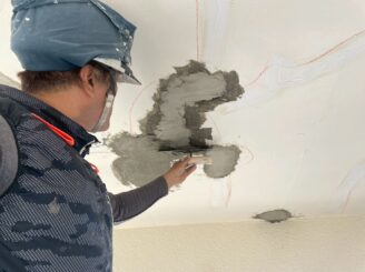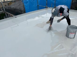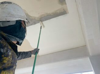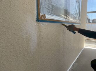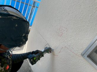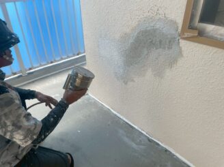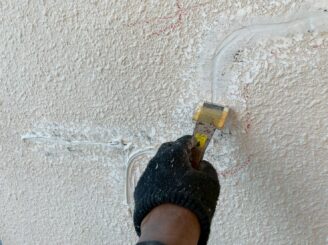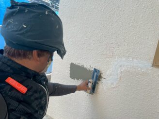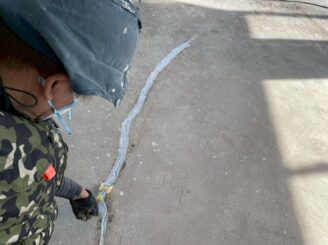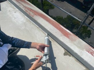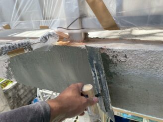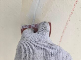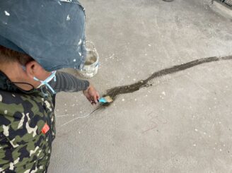 入隅部シーリング処理(ヘラ押さえ)⇒
