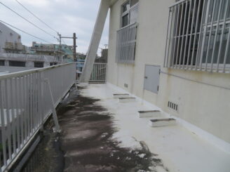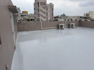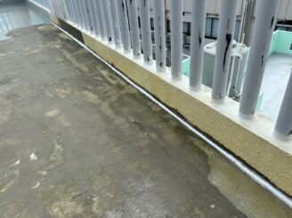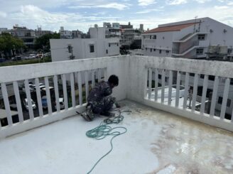 また、防水工事につきましては、既存の防水層に劣化が見られたため、旧塗膜の除去から丁寧に作業を行い、防水までしっかりと施工しております。
