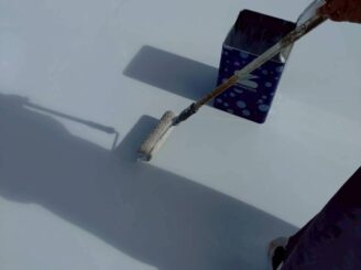防水主剤 1層目塗布(ガラスクロス貼り付け)① ⇒