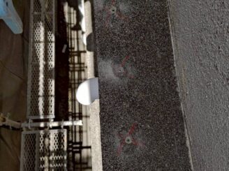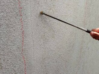 足場設置後、打診検査・マーキング② ⇒