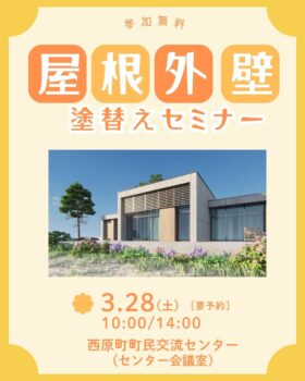 ・初めての塗装をお考えの方、 という方も大歓迎です。 ぜひこの機会に外壁・屋根塗装に関する不安点を解消しましょう✨ お家の壁の劣化症状についてや塗り替え時期などお気軽にご相談ください! 皆様のご参加をお待ちしております🌸